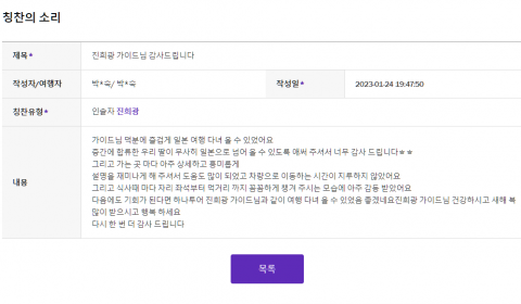 투투에이전시 조 ㄱ웅 가이드님 참좋은 칭찬글
